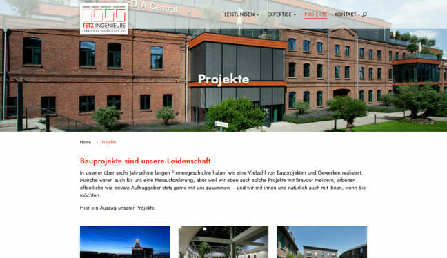 - Fokus liegt auf Leistungs- und Projektbeschreibungen
